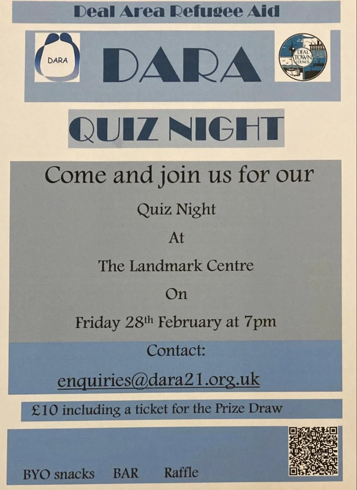 Join us for a fun and impactful charity quiz night, compered by Huw Thomas on February 28, 2025, at the Landmark Centre. Deal CT14 6BB